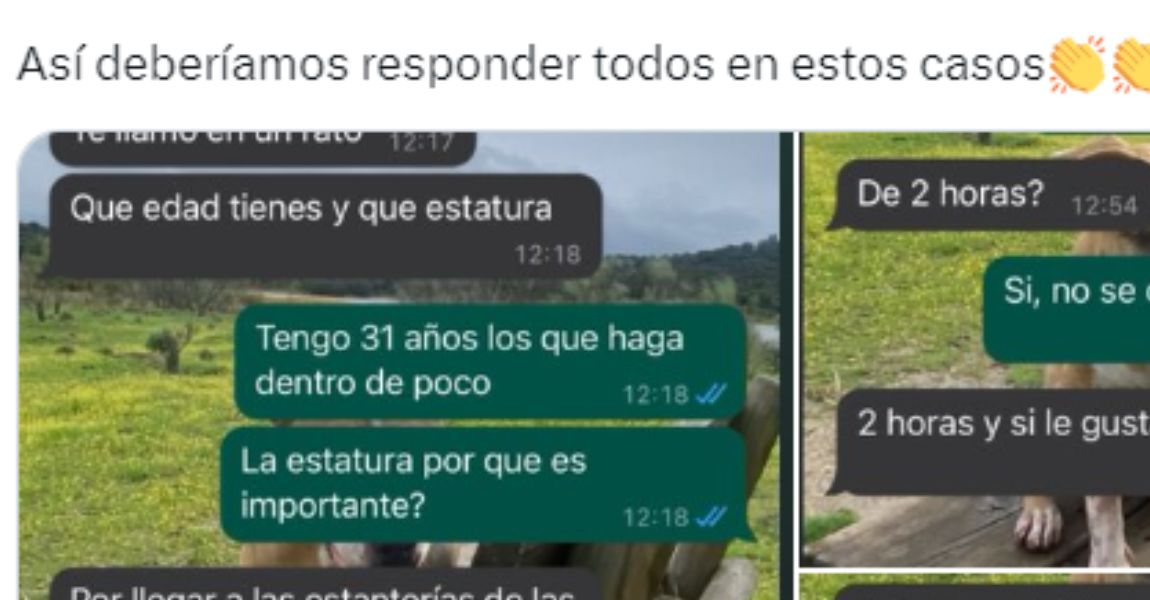 La cuenta Soy Camarero, que ha compartido la conversación en X, ha elogiado la respuesta de la mujer y ha animado a todos los que buscan trabajo en hostelería a hacer lo mismo. “Así deberíamos responder todos en estos casos”, ha escrito. La publicación ha recibido más de 1.000 ‘me gusta’ en pocos minutos y ha generado numerosos comentarios de apoyo a la candidata y de crítica al hostelero.