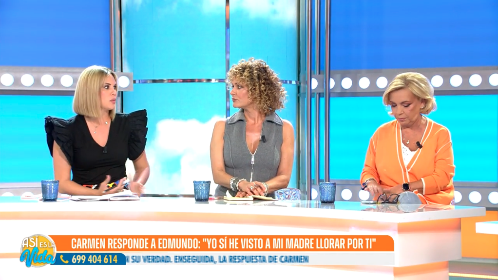 Raquel Arias, intentando ser la portavoz de Edmundo en el programa, se encontró con la réplica de Carmen, quien le recordó que Edmundo había desaparecido de sus vidas mucho antes del fallecimiento de su madre, María Teresa Campos. “Ni hablamos de él ni hemos dado ningún titular de él, el que habla es él”, señaló Carmen, subrayando la ausencia de cualquier mención o atención hacia el humorista por parte de su familia.