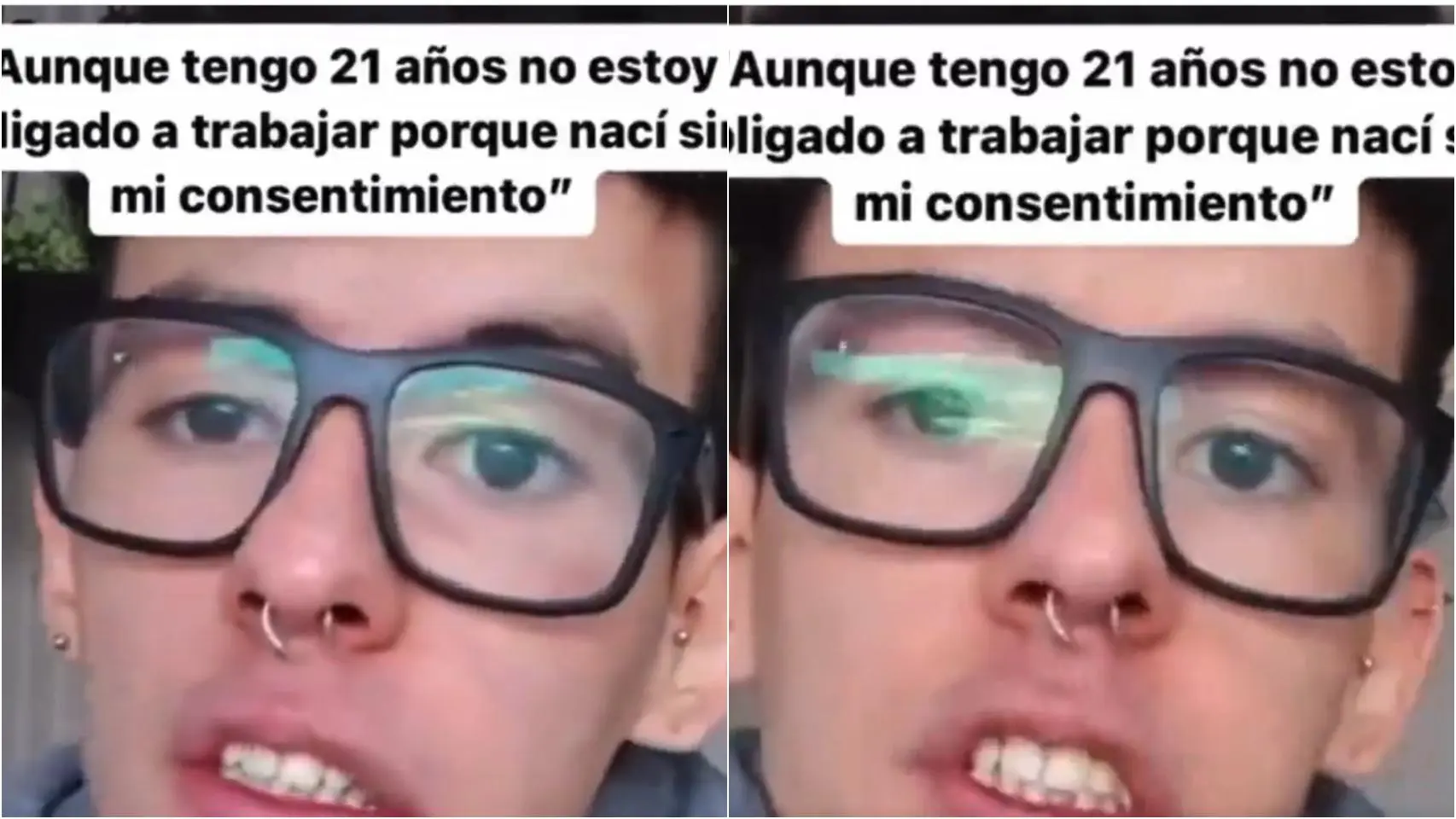 El vídeo, compartido por el usuario «Recuncho3» en X, antigua Twitter, ha acumulado rápidamente más de tres millones de visualizaciones y cerca de 40.000 interacciones. Este sorprendente testimonio ha dejado a muchos sin palabras, y no es para menos. La lógica del joven, desde un punto de vista filosófico, podría parecer impecable: si no pidió nacer, ¿por qué debería estar obligado a trabajar? «No me preguntaron si yo quería nacer. No me pidieron consentimiento y no tiene sentido que porque mis papás hayan querido darme la vida hace 21 años ahora yo tenga que trabajar», añade en el vídeo que ha generado un sinfín de reacciones.